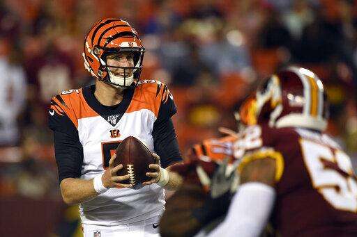 Haskins accomplished that, threw a touchdown pass and lost a fumble in the Washington Redskins' 23-13 loss to the Cincinnati Bengals on Thursday night. The first-round pick made strong throws and his share of mistakes, while fellow rookie Ryan Finley continued to make his case to be Cincinnati's backup quarterback with yet another impressive outing.