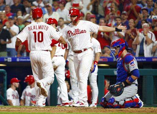 PHILADELPHIA (AP) - J.T. Realmuto hit a grand slam, Bryce Harper went deep twice and the Philadelphia Phillies beat the Chicago Cubs 11-1 in Charlie Manuel's first game as hitting coach, ruining Cole Hamels' return home Wednesday night.