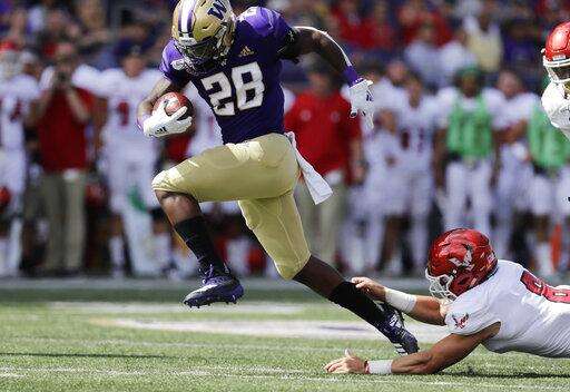 Richard Newton rushed for a 23-yard touchdown on Washington's first possession and Salvon Ahmed added a 1-yard plunge in the third quarter to give the Huskies a 42-7 lead.