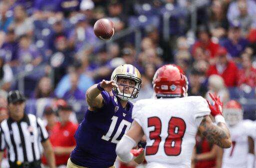 SEATTLE (AP) - Jacob Eason threw for 349 yards and four touchdowns in his first game in nearly two years, and No. 13 Washington opened the season with a 47-14 win over Eastern Washington on Saturday.