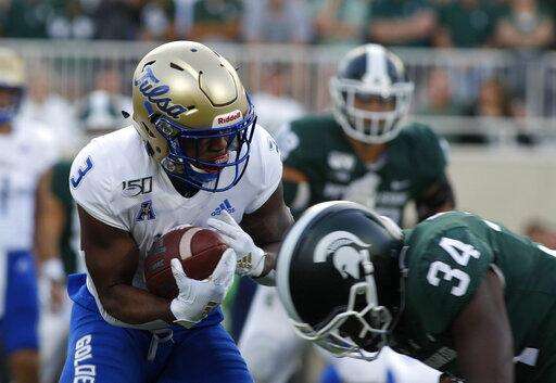 Tulsa (0-1) botched two shotgun snaps in the second quarter - part of the reason its rushing total ended up so far below zero. One of those loose balls went out of the end zone for a safety.