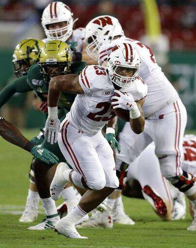 Taylor scores 4 TDs, No. 19 Wisconsin routs USF 49-0