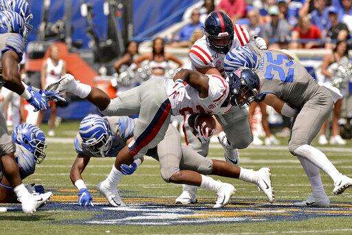 Taylor's running, Huff's safety help Memphis beat Ole Miss