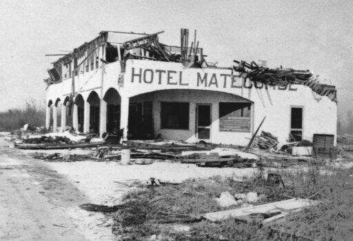 In this undated photo made available by the Keys History & Discovery Center, shows a hotel destroyed by the Labor Day hurricane of 1935. Florida is bracing for Hurricane Dorian, a powerful hurricane, that could strike anywhere along the east coast of the Peninsula. (Keys History & Discovery Center via AP) The Associated Press
