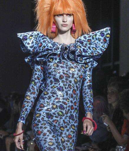 The latest fashion creation from Jeremy Scott is modeled during New York's Fashion Week, Friday, Sept. 6, 2019. (AP Photo/Bebeto Matthews) The Associated Press
