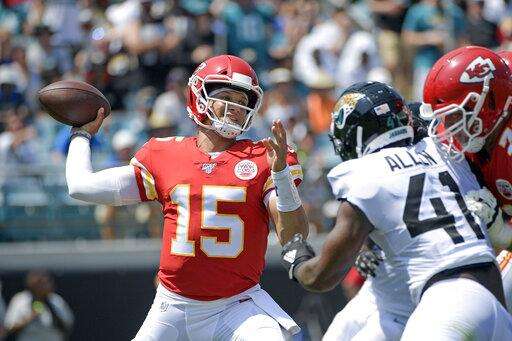 JACKSONVILLE, Fla. (AP) - Despite losing star receiver Tyreek Hill early, Patrick Mahomes threw for 378 yards and three touchdowns while leading the Kansas City Chiefs to a testy and tactful 40-26 victory over the injury-riddled Jacksonville Jaguars on Sunday.