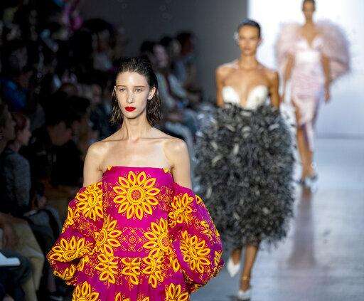 The Prabal Gurung collection is modeled during Fashion Week, Sunday, Sept. 8, 2019 in New York. (AP Photo/Craig Ruttle)