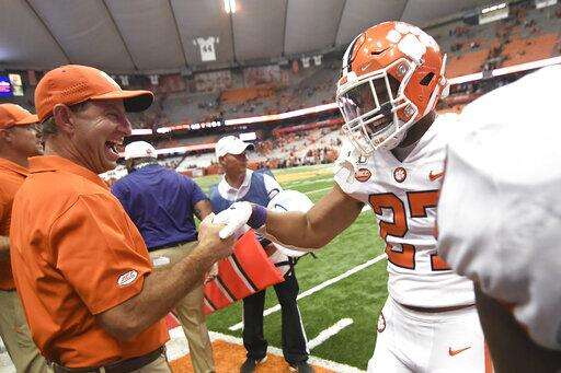 These teams have never played, although the 49ers lost to the Clemson "B'' team during the program's first season in 1946. Charlotte stopped the program in 1948. ... Charlotte will get $1 million for playing at Clemson. ... Clemson has won 17 straight games at home and 38 of their last 39 at Memorial Stadium. The lone loss in that stretch was a 43-42 defeat to Pitt in 2016. .. Charlotte is playing its second ACC team since restarting football in 2013. The 49ers lost to Louisville 70-16 in the 2016 opener. ... Clemson has won 20 consecutive non-conference games. In fact, no one on the Tigers roster has lost a game to a nonconference opponent. ... Clemson QB Trevor Lawrence has five interceptions this season after throwing just four all of last season.