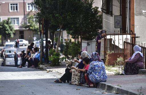 People sit and stand on the streets after evacuating their homes, following an earthquake in Istanbul, Thursday, Sept. 26, 2019. Turkey's emergency authority says a 5.8 magnitude earthquake has shaken Istanbul with no immediate damage reported. (DHA via AP) The Associated Press