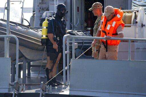 Reporters on a trip to Syria organized by the Russian Defense Ministry could see a missile corvette sailing off on patrol and a group of navy divers practicing at the Tartus harbor.