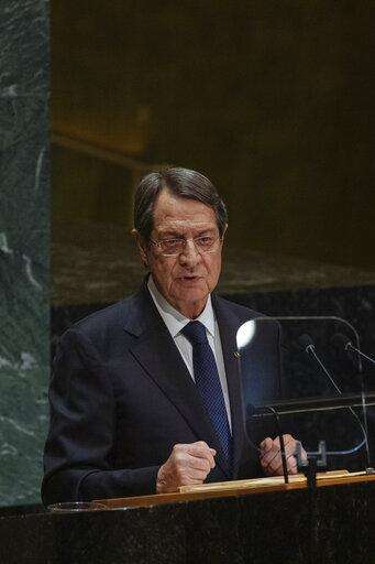 The president of Cyprus is using his address before the United Nations to once again accuse Turkey of undermining recent peace talks with, among other things, its "illegal military occupation" and drilling for gas in waters where Cyprus has exclusive economic rights.