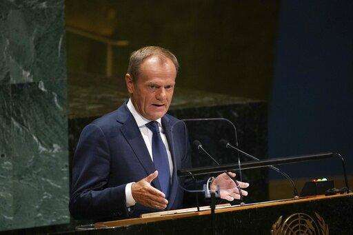 Speaking Thursday at the U.N. General Assembly, European Council President Donald Tusk said the idea of an imminent clash between globalism and patriotism is "false and dangerous."