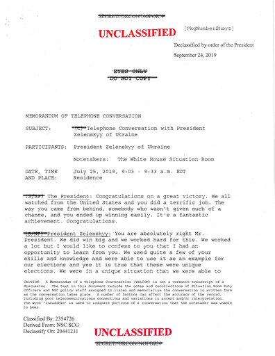 A few days before his call with Zelenskiy, Trump ordered his staff to freeze nearly $400 million in aid to Ukraine. The president said he did so to fight corruption and urge European nations to do more to help Ukraine.