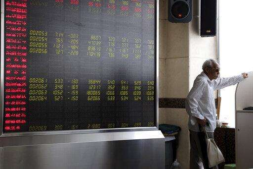 In this Wednesday, Sept. 25, 2019, photo, an elderly Chinese man stands near a display board for stock prices at a brokerage in Beijing. Asian stock markets followed Wall Street higher Thursday, Sept. 26, 2019, after U.S. President Donald Trump suggested a costly tariff war with China could be resolved soon. (AP Photo/Ng Han Guan) The Associated Press