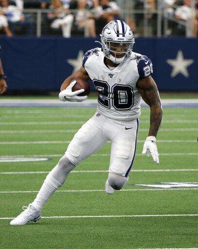 Dallas Cowboys running back Tony Pollard (20) runs the ball against the Miami Dolphins in the second half of an NFL football game in Arlington, Texas, Sunday, Sept. 22, 2019. (AP Photo/Michael Ainsworth) The Associated Press