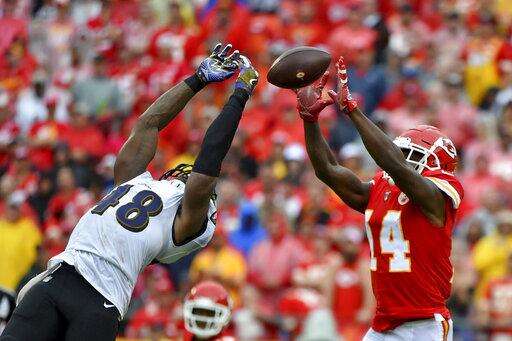 Sammy Watkins had 198 yards receiving and three TDs in the season-opening, 40-26 victory at Jacksonville. Demarcus Robinson had 174 and two scores in Week 2, a 28-10 win at Oakland. Mecole Hardman had the 83-yard TD reception in a 33-28 win against Baltimore last Sunday.