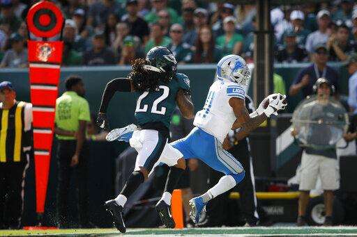 Detroit is the first NFL team with four players to have 100 yards receiving and a TD in a game through Week 3. Receiver Danny Amendola and rookie tight end T.J. Hockenson did it in the season-opening tie at Arizona. Receiver Kenny Golladay followed suit in the Week 2 win over the Chargers. In last week's victory at Philadelphia, Marvin Jones became the fourth player on the team with 100 yards receiving and a score.