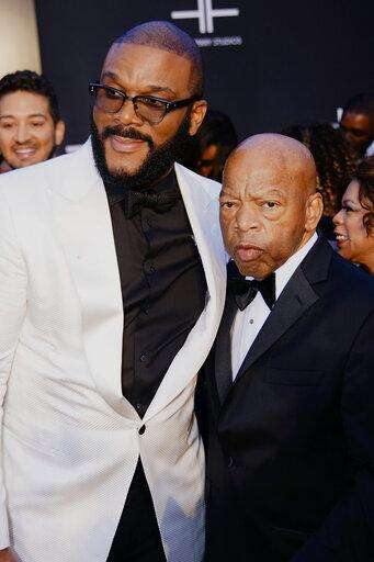 Tyler Perry, left, and Rep. John Lewis, D-Ga., pose for a photo on the red carpet at the grand opening of Tyler Perry Studios on Saturday, Oct. 5, 2019, in Atlanta. (Photo by Elijah Nouvelage/Invision/AP)