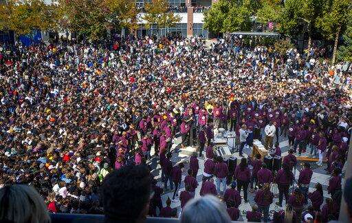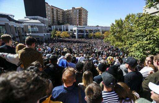 SALT LAKE CITY (AP) - Thousands of people showed up to an outdoor shopping center in Utah to see rapper Kanye West perform what he calls a worship service.