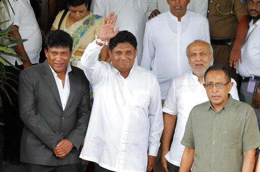 Presidential candidate of Sri Lanka's governing United National Party, Sajith Premadasa waves to media as he leaves the election commission after filing his nomination with his supporters in Colombo, Sri Lanka, Monday, Oct. 7, 2019. Premadasa is a son of former President Ranasinghe Premadasa, who was assassinated in 1993 by the Tamil Tiger rebels. The rebels were eventually defeated in the civil war. (AP Photo/Eranga Jayawardena) The Associated Press