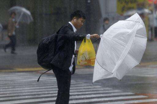 TOKYO (AP) - A heavy downpour and strong winds pounded Tokyo and surrounding areas on Saturday as a powerful typhoon forecast to be Japan's worst in six decades made landfall and passed over the capital, where streets, nearby beaches and train stations were long deserted.