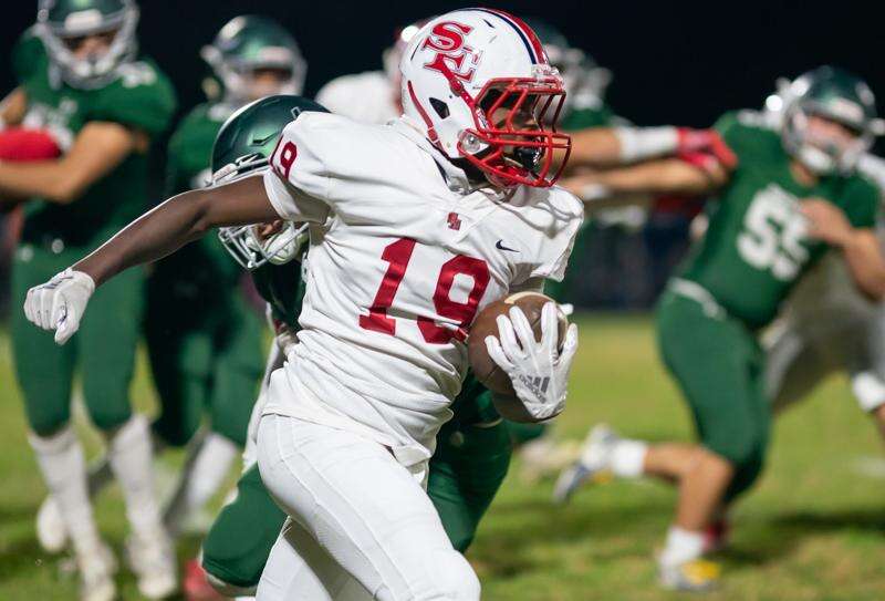 South Elgin's Cristopher Mejia-Gomez (14) carries the ball against Bartlett at Bartlett High School in Bartlett, IL on Friday, October 18, 2019