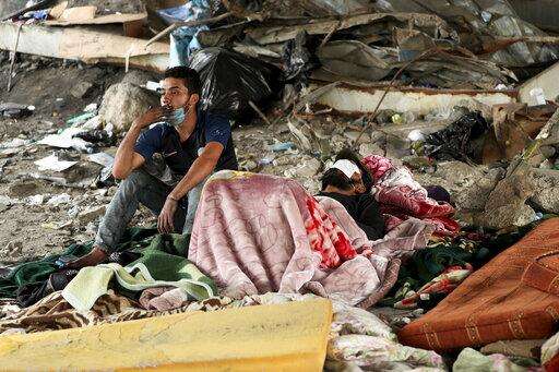 Protesters rest under the Joumhouriya Bridge, that leads to the Green Zone where many government offices and embassies are located, during ongoing anti-government protests, in Baghdad, Iraq, Sunday, Nov. 3, 2019. (AP Photo/Hadi Mizban)