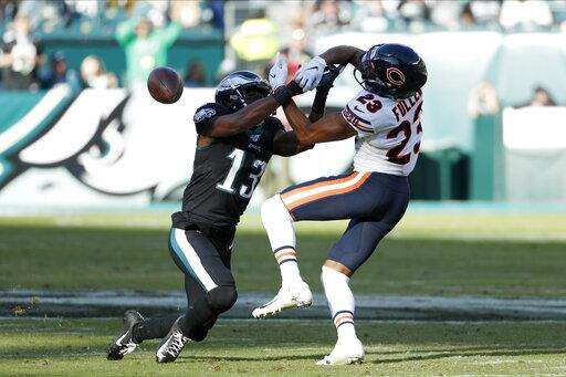 Wentz has thrown a TD pass in 12 straight games, tied with Seattle's Russell Wilson for longest active streak. ... Eagles have won 11 of last 15 against Chicago. ... Bears LB Khalil Mack had four tackles, including two for loss, one quarterback hit and one pass knockdown. ... Eagles DT Genard Avery had a half-sack in his debut with his new team.