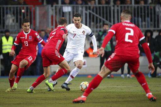 LUXEMBOURG (AP) - Cristiano Ronaldo took his career tally to 99 international goals on Sunday as Portugal qualified for the 2020 European Championship with a 2-0 win at Luxembourg.