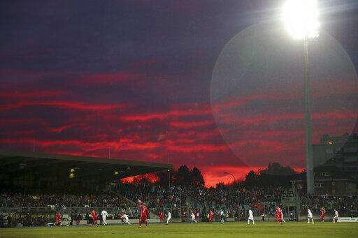 The sun sets over the pitch during the Euro 2020 group B qualifying soccer match between Luxembourg and Portugal at the Josy Barthel stadium in Luxembourg, Sunday, Nov. 17, 2019. (AP Photo/Francisco Seco) The Associated Press