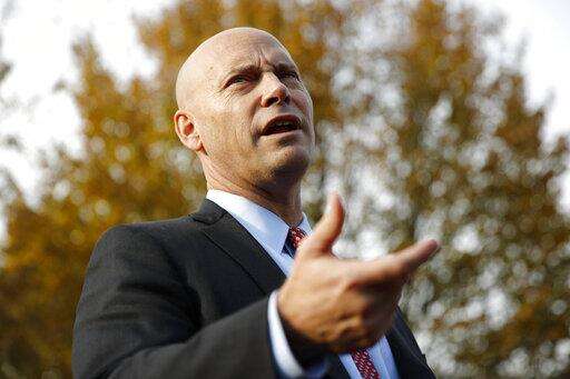 Marc Short, chief of staff to Vice President Mike Pence, speaks with members of the media outside the White House, Tuesday, Nov. 19, 2019, in Washington. (AP Photo/Patrick Semansky) The Associated Press