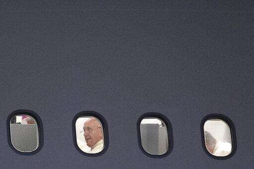 Pope Francis sits in an airplane at the Rome Leonardo da Vinci airport, Tuesday, Nov. 19, 2019. Pope Francis' three-day visit to Thailand, followed by three days in Japan, will be a welcome break for the 82-year-old pope. He is enduring fresh opposition from Catholic conservatives in the U.S. over his just-concluded meeting on the Amazon as well as a new financial scandal at home. (AP Photo/Alessandra Tarantino) The Associated Press