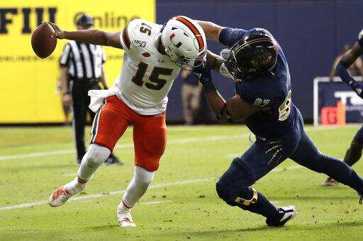 Cam'ron Harris rushed for 83 yards and a fourth-quarter touchdown for Miami (6-5), which came into the weekend with hopes of possibly getting into the Orange Bowl. Those chances were doomed by FIU and former Miami coach Butch Davis, who improved to 4-2 all-time against the Hurricanes.