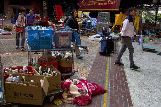 HONG KONG (AP) - Hong Kong police said Wednesday that they will enter a blockaded university to clean up hazardous material before lifting a 10-day siege, after civilian search teams found no evidence of any protesters still holding out.