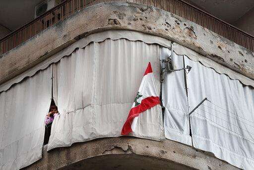 A Lebanese woman stands on her apartment balcony that is still riddled with bullets left over from the 1975-1990 Lebanese civil war on a former Beirut frontline between Christian district of Ain el-Rummaneh and a Muslim Shiite district of Shiyah, as he watches a protest against the return of the civil war, in Beirut, Lebanon, Wednesday, Nov. 27, 2019. Hundreds of Lebanese women marched across a former front line in the Lebanese capital carrying white roses and Lebanese flags to denounce overnight clashes between rival groups that injured dozens of people. (AP Photo/Hussein Malla) The Associated Press