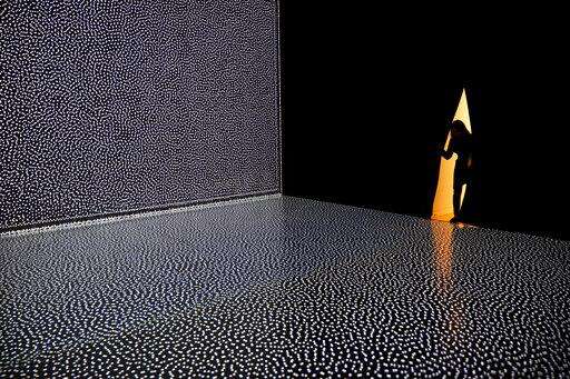 A woman enters an exhibition hall featuring an interactive installation artwork titled "Kinesis #3 ' Dissolving Field" by Hiroaki Umeda at NTT Intercommunication Center Wednesday, Dec. 11, 2019, in Tokyo. (AP Photo/Jae C. Hong)