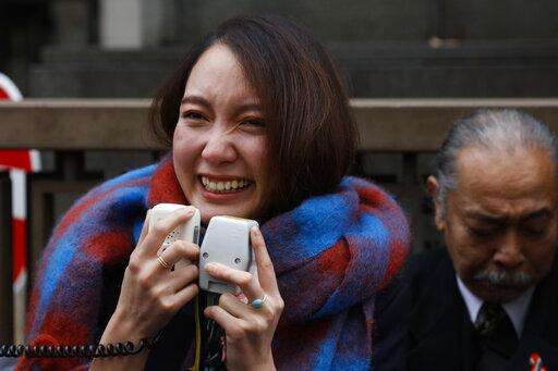 Freelance journalist Shiori Ito holds a banner that reads in English "winning the lawsuit" during a news conference outside a courthouse Wednesday, Dec. 18, 2019, in Tokyo. A Tokyo court awarded compensation to Ito in a high-profile rape case which prosecutors had once dropped their criminal investigation into an alleged attacker known for his close ties with Prime Minister Shinzo Abe and his ultra-conservative supporters. (AP Photo/Jae C. Hong) The Associated Press