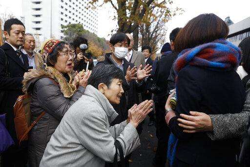 Freelance journalist Shiori Ito, right, is congratulated by her supporters after winning a lawsuit against former reporter Noriyuki Yamaguchi outside a courthouse Wednesday, Dec. 18, 2019, in Tokyo. A Tokyo court awarded compensation to Ito in a high-profile rape case which prosecutors had once dropped their criminal investigation into an alleged attacker known for his close ties with Prime Minister Shinzo Abe and his ultra-conservative supporters.(AP Photo/Jae C. Hong) The Associated Press