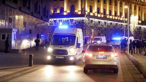 Ambulances leave the area near the building of the Federal Security Service (FSB, Soviet KGB successor) in the background in Moscow, Russia, Thursday, Dec. 19, 2019. Russian officials say an officer of Russia's main security agency has been killed by an unidentified gunman near its Moscow headquarters and five others have been injured. (AP Photo/Ilya Varlamov) The Associated Press