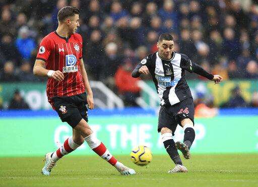 NEWCASTLE, England (AP) - Miguel Almiron scored his first goal for Newcastle in his 27th appearance for the club in its 1-0 win over Crystal Palace in the Premier League on Saturday.