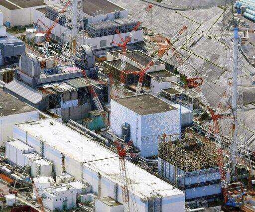 FILE - This Sept. 4, 2017, aerial file photo shows Fukushima Dai-ichi nuclear power plant's reactors, from bottom at right, Unit 1, Unit 2 and Unit 3, in Okuma, Fukushima prefecture, northeastern Japan. Japan revised a roadmap on Friday, Dec. 27, 2019, for the tsunami-wrecked Fukushima nuclear plant cleanup, further delaying the removal of thousands of spent fuel units that remain in cooling pools since the 2011 disaster. It's a key step in the decadeslong process, underscoring high radiation and other risks. (Daisuke Suzuki/Kyodo News via AP, File)/Kyodo News via AP) The Associated Press