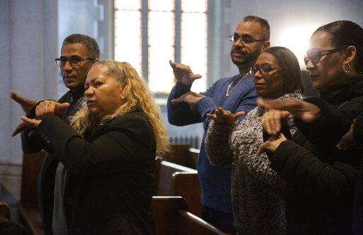 NEW YORK (AP) - The Lord's Prayer ended with the bang of dozens of fists that landed on open palms after a circular motion and a thumbs up in a joint 'œAmen!'ť