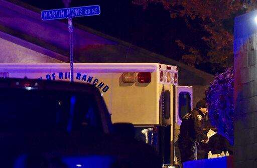 Authorities work the scene where multiple people were found dead in a home in the Northern Meadows subdivision, Wednesday, Dec. 25, 2019, in Rio Rancho, N.M. (Roberto E. Rosales/The Albuquerque Journal via AP)