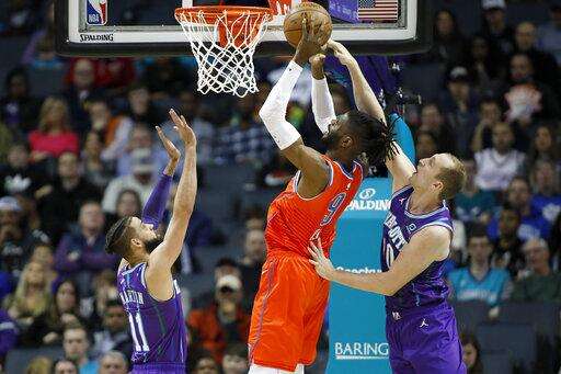 CHARLOTTE, N.C. (AP) - Shai Gilgeous-Alexander scored 27 points, Dennis Schroder added 24 off the bench and the Oklahoma City Thunder beat the Charlotte Hornets 104-102 in overtime on Friday night for their fifth win in the last six games.