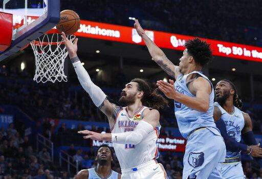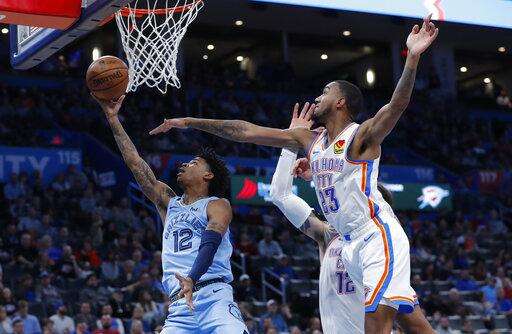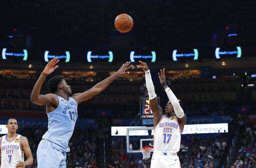 Grizzlies: Memphis has made at least 10 3-pointers in a franchise-record 11 straight games - four more games than the club's previous mark. The Grizzlies went 10 of 25 from behind the arc. '¦ Jackson has hit at least one 3 in 20 straight games. The team record is 31, held by Tyreke Evans. '¦ Ja Morant had 10 points and five rebounds. Thunder: Rookie forward Darius Bazely made his second straight start in place of Danilo Gallinari, who missed a second consecutive game due to left ankle soreness. '¦ Oklahoma native and Broadway star Kristin Chenoweth attended the game. '¦ The Thunder shot 41% from the field. '¦ Kevin Hervey made his NBA debut, playing the final 1:18. GALLINARI OUT