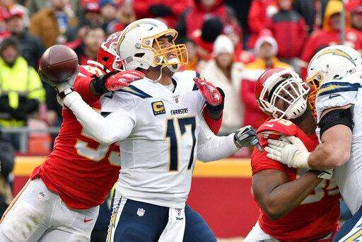 KANSAS CITY, Mo. (AP) - If the final pass that Philip Rivers threw for the Los Angeles Chargers occurred Sunday, it certainly was a fitting one.