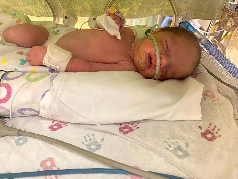 "Everything's looking good," Gabrielle said. "I heard his little cry after he was born. For his age, he's doing good."