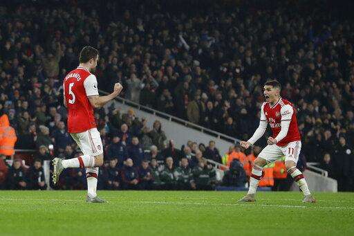 Mikel Arteta earned his first win as Arsenal manager at his third attempt through first-half goals from Nicolas Pépé and Sokratis Papastathopoulos.