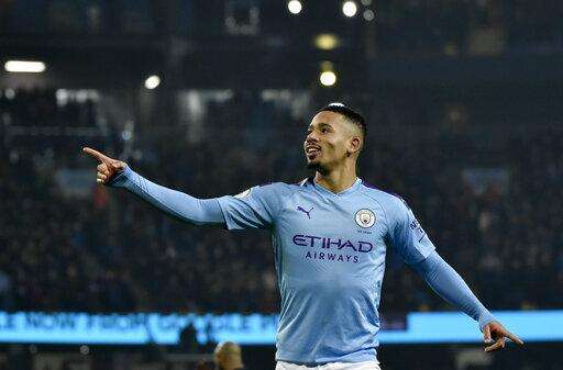 MANCHESTER, England (AP) - Gabriel Jesus struck twice within seven second-half minutes as Manchester City opened 2020 with a 2-1 win over Everton in the Premier League on Wednesday.