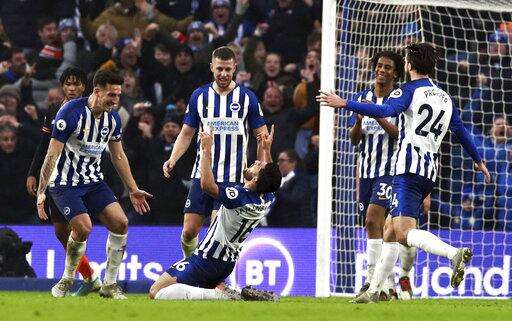 BRIGHTON, England (AP) - Alireza Jahanbakhsh's acrobatic overhead kick gave Brighton a 1-1 draw with Chelsea in the Premier League on New Year's Day.